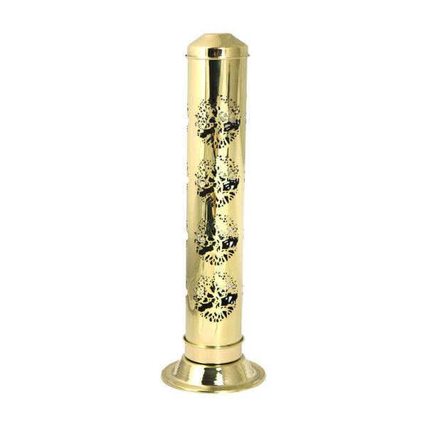 ** Quemador de Incienso Torre de Latón Dorado - Diseño Árbol de la Vida **